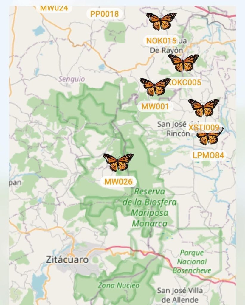 Después continuó por Río Verde, San Luis Potosí, y cruzó la Sierra Gorda de Guanajuato. El 7 de noviembre, MW026 apareció en Querétaro, en las zonas de Juriquilla y San José el Alto. Un día después fue detectada cerca de Temascalcingo, Estado de México. Y tras 43 días de viaje desde su liberación, este domingo 9 de noviembre la MW026 llegó oficialmente a casa, a la Reserva de la Biosfera Mariposa Monarca.