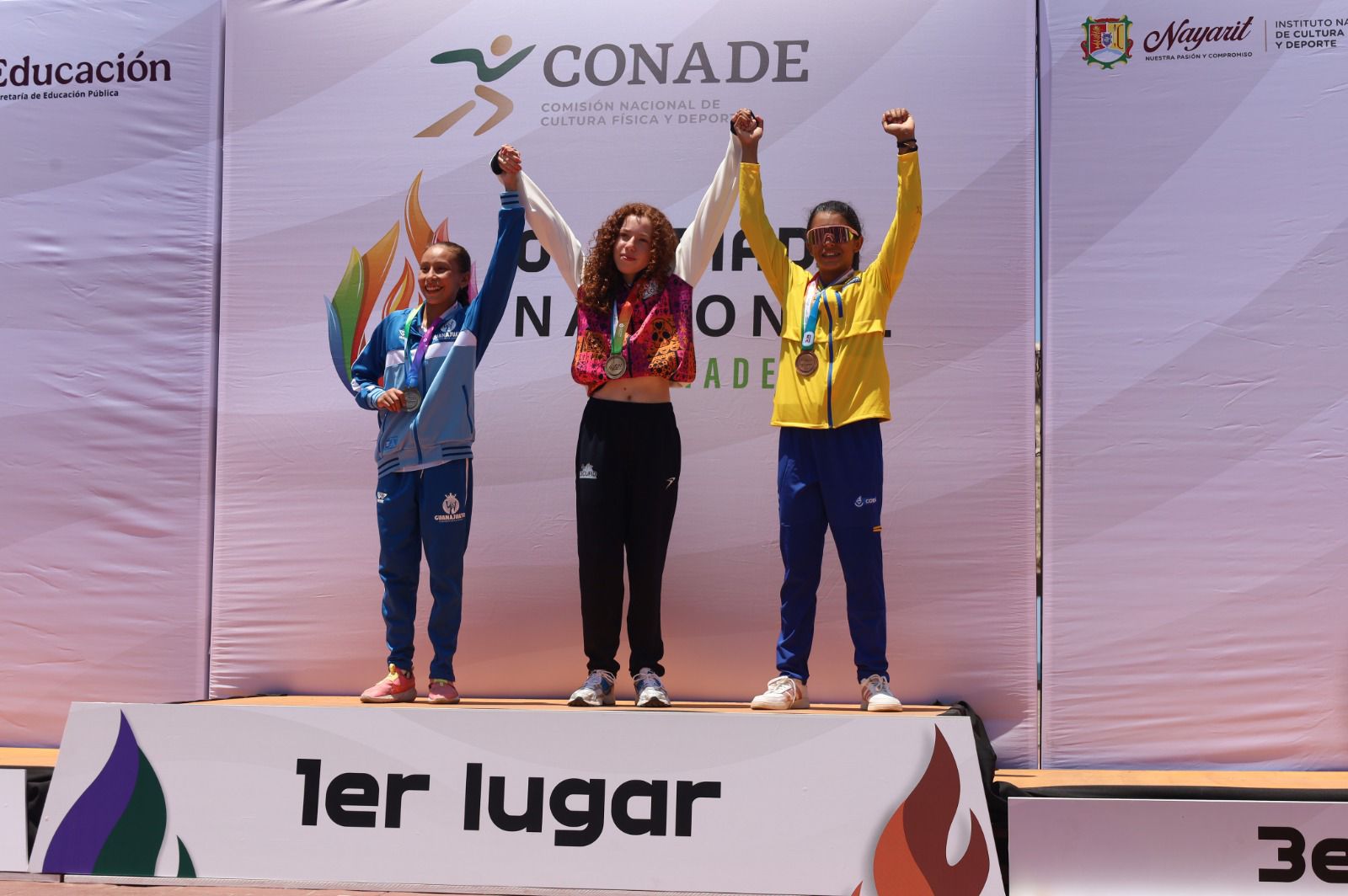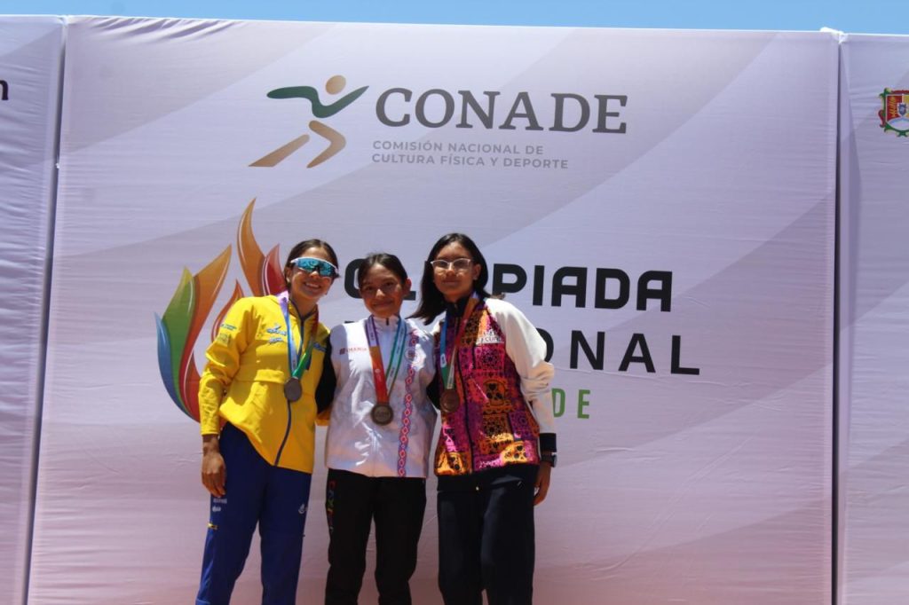 Valentina Montoya entregó el primer oro para la delegación michoacana que participa en la Olimpiada Nacional 2026, al subir a lo más alto del pódium en la disciplina de acuatlón dentro de la categoría de 12 y 13 años.