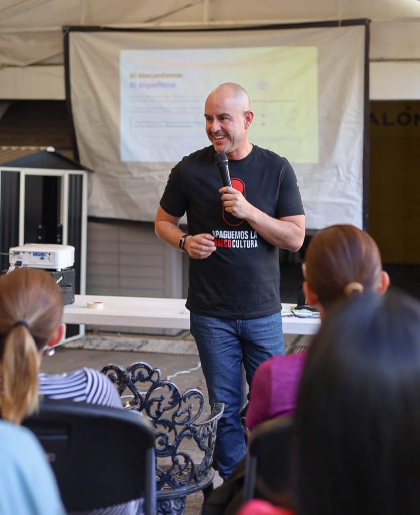 Morelia, Michoacán – El activista y autor Adolfo “Fito” Torres, llevó a cabo una conferencia en el Colegio Ebenezer de esta ciudad, donde presentó y reflexionó sobre su libro Apaguemos la Narcocultura, una guía dirigida a padres y maestros para contrarrestar la influencia del tema en niños y jóvenes.