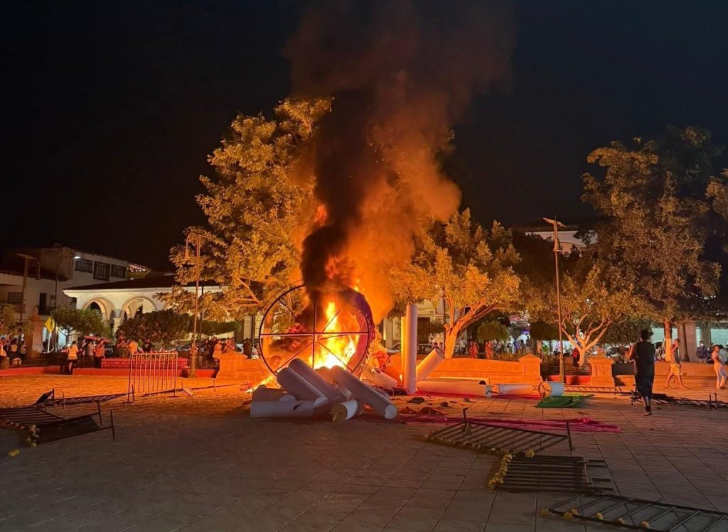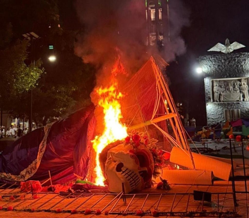 La Plaza Constituyentes, un espacio de convivencia, también fue blanco de la furia ciudadana, con actos de vandalismo, destrozos e incendios en lo que momentos horas eran ofrendas por el día de muertos.
