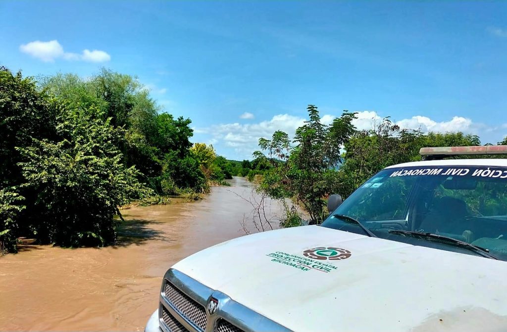 Buenavista, Mich.- Las fuertes lluvias de las últimas horas generaron el desbordamiento del canal conocido como Puente Rallado y del canal de Vicente Guerrero, lo que dejó bajo el agua a más de 40 viviendas en la comunidad, municipio de Buenavista.