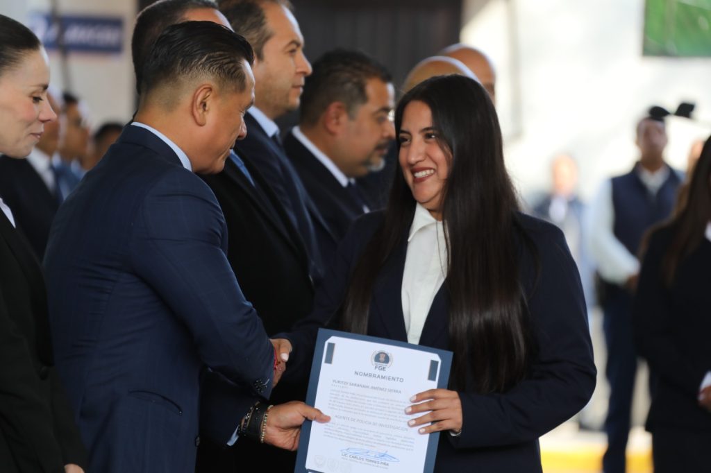 Como resultado de concursos de oposición públicos, rigurosos y transparentes, este día la FGE integró a 52 agentes de la Policía de Investigación, 13 elementos de la Policía Cibernética y designó 14 titularidades en áreas periciales, todos seleccionados entre los mejores evaluados.