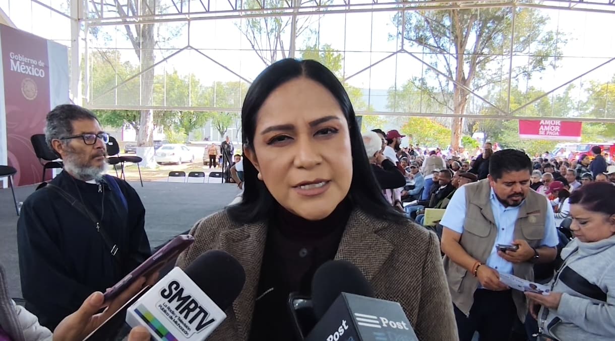 La secretaria encabezó en Morelia la entrega simbólica de 1 mil tarjetas de pensión para adultos mayores, que corresponde a quienes se inscribieron apenas en agosto en Morelia, ya que en el estado se registraron 7 mil 200.
