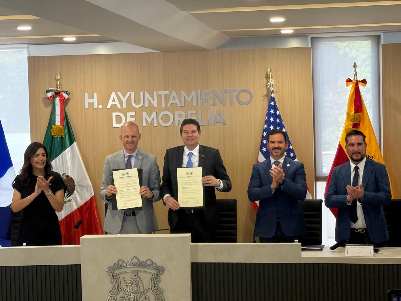 Con el fin de fortalecer lazos y respaldar a los connacionales que radican en el vecino país del norte, ante las políticas migratorias del presidente norteamericano, Donal Trump, el alcalde de Morelia, Alfonso Martínez Alcázar y su homónimo de Sacramento, California, Kevin McCarty consolidaron un hermanamiento.