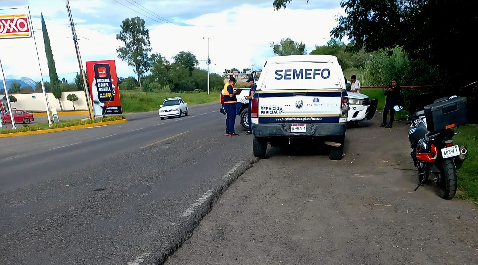 Unos automovilistas vieron al motociclista tirado e inconsciente, por lo que avisaron al número de emergencias. Consecutivamente arribaron oficiales y paramédicos, quienes confirmaron el deceso del motorista y delimitaron el perímetro.