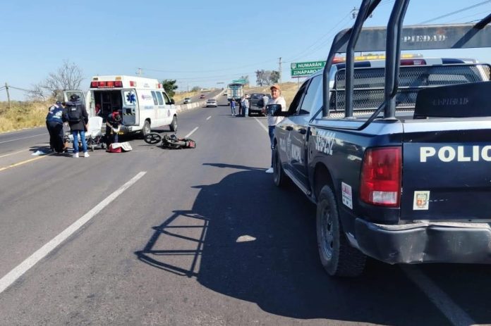 La Piedad, Mich.- Un joven motociclista resultó con diversas lesiones, luego de verse involucrado en un choque contra una camioneta sobre la carretera La Piedad–Numarán.