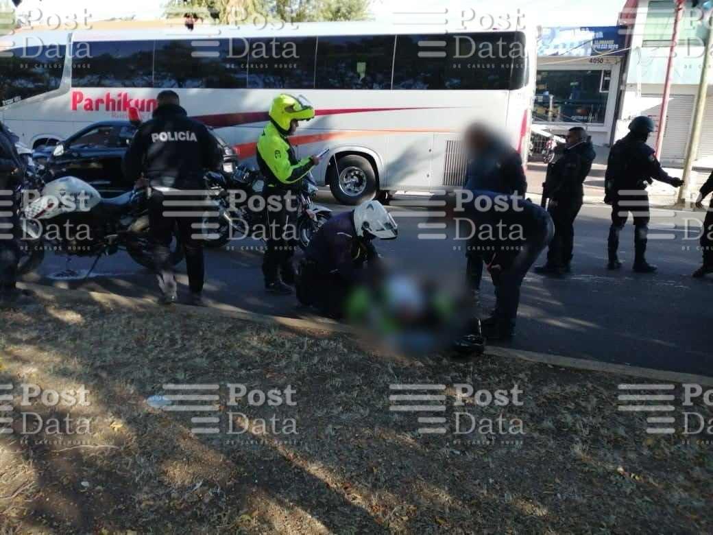Morelia, Mich.- Un motopatrullero de la Guardia Civil resultó herido tras ser impactado accidentalmente por un automovilista sobre el Periférico Paseo de la República, en Morelia.