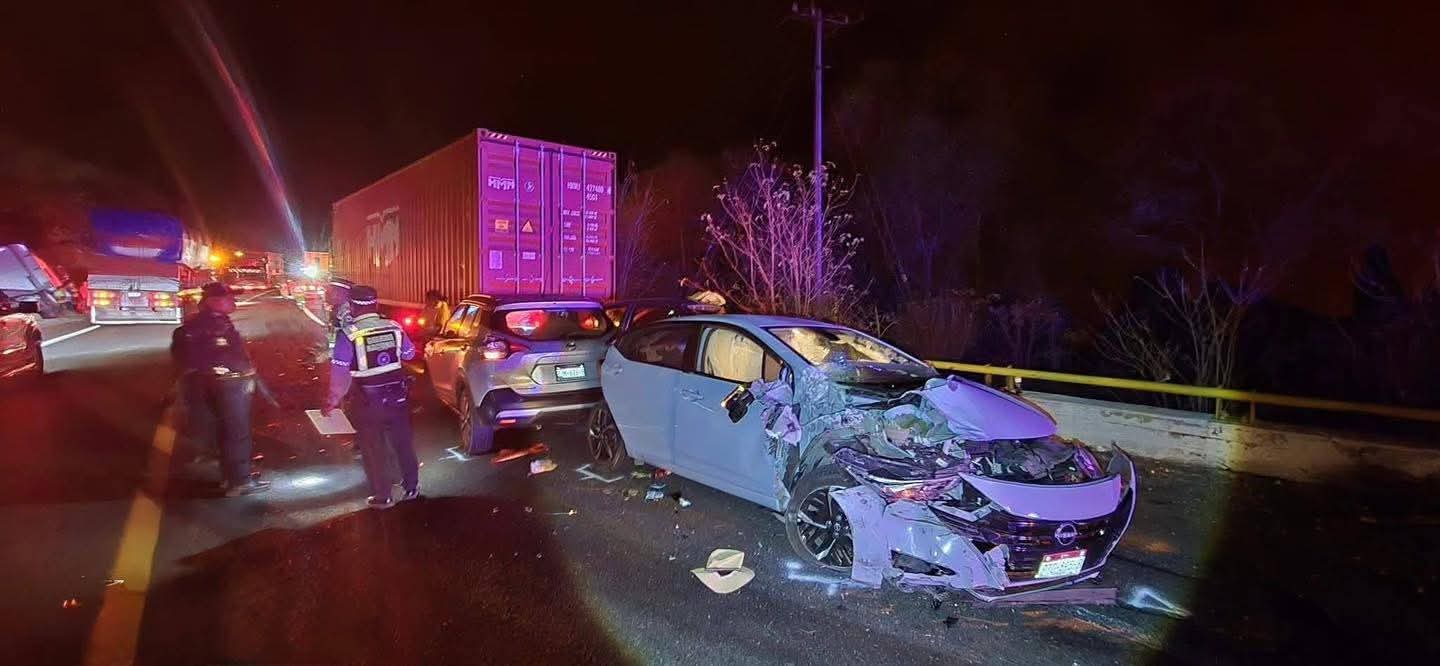 El incidente involucró a varios vehículos, entre ellos un automóvil Nissan Versa y unidades de carga pesada que se encontraban detenidas sobre la vía. Según testimonios recabados en el lugar, uno de los tractocamiones impactó al vehículo compacto, lo que generó una serie de colisiones entre las unidades que se encontraban en la zona.