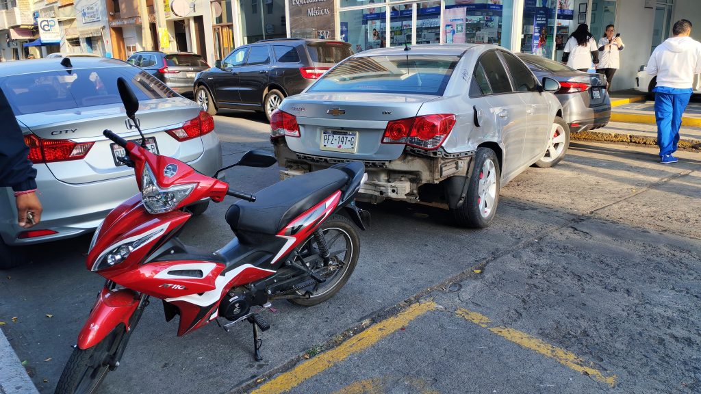 Zamora, Mich.- Una mujer peatona resultó lesionada al ser arrollada por un vehículo que fue chocado por un camión pasajero, incidente en el que otro auto y una moto que estaban estacionados también resultaron afectados.
