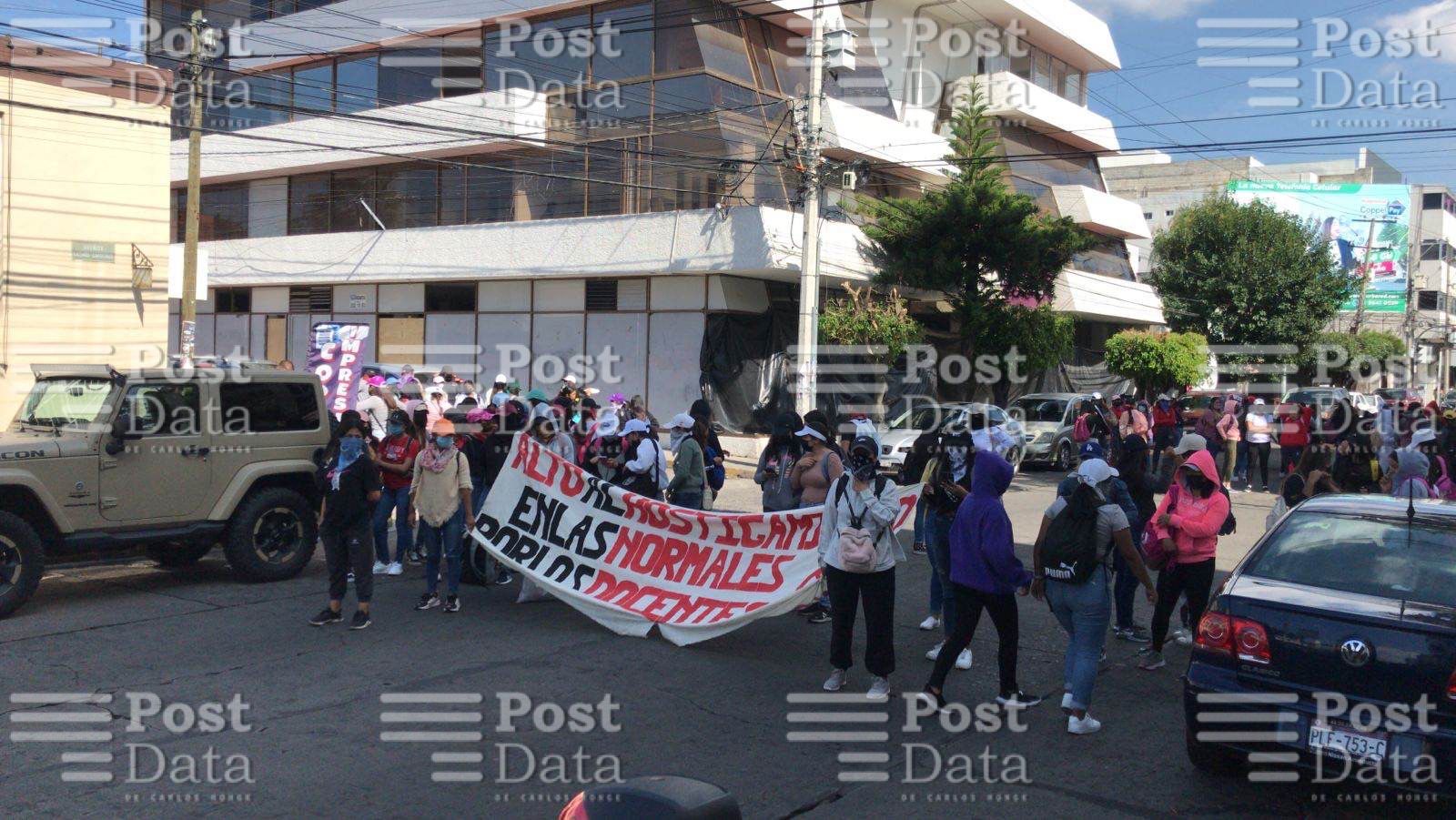 Morelia, Mich.-Un contingente de estudiantes de la Normal de Educadoras se manifestó a las afueras de la dirección de Educación Media Superior y Superior de la Secretaría de Educación del Estado (SEE), para denunciar hostigamiento por parte de algunos docentes al interior de su plantel.