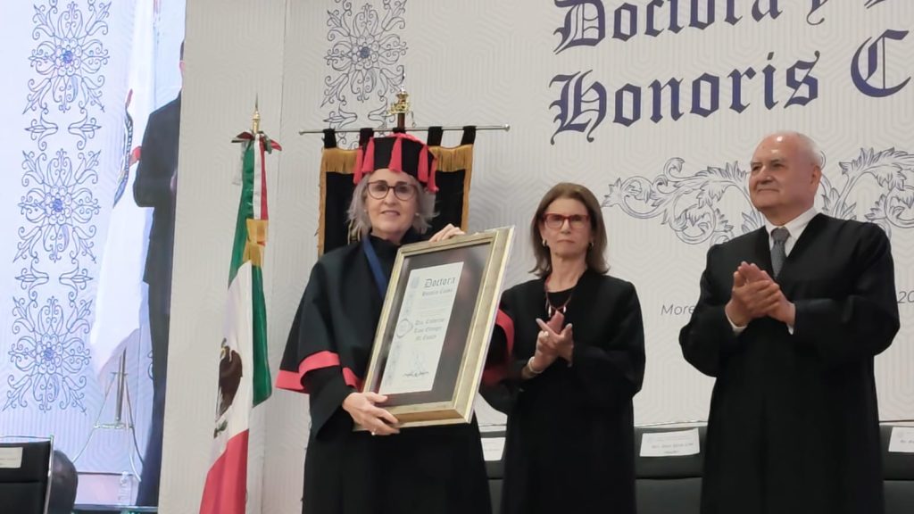 Con la presencia del secretario de Educación Pública, Mario Delgado Carrillo y el gobernador Alfredo Ramírez Bedolla, el Consejo de la Universidad Michoacana de San Nicolás de Hidalgo (UMSNH) otorgó el Doctorado Honoris Causa a la bióloga celular, Annie Pardo Cemo, mamá de la presidenta de México, Claudia Sheinbaum Pardo; a la investigadora Catherine Rose Ettinger McEnulty y al historiador Gerardo Sánchez Díaz.