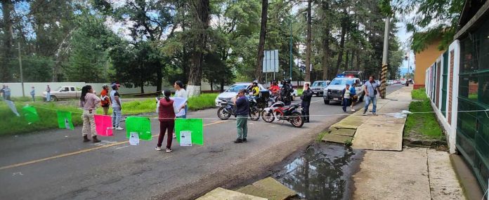 La tarde de este lunes, los manifestantes obstruyeron el paso con pancartas y motocicletas, hecho que movilizó a los policías municipales, quienes ante el caos vial desviaron los automotores por rutas alternas.