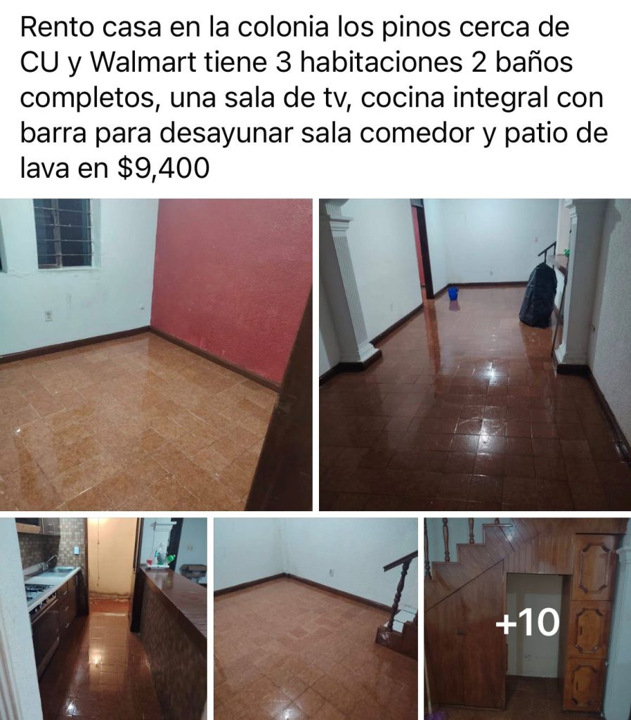 En un ejercicio de búsqueda en grupos de renta, las opciones más económicas son habitaciones que van de los 3 mil a los 5 mil pesos. En el caso de las casas, los costos varían según la zona: en Ejidal Ocolusen una renta alcanza los 9 mil 500 pesos, mientras que en Chapultepec Norte supera los 12 mil. En áreas fuera del anillo periférico, una casa puede costar entre 4 mil y 6 mil pesos, dependiendo del tamaño.