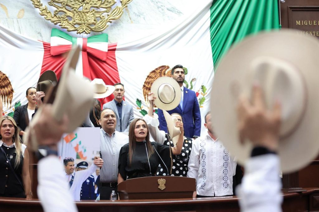 Al grito de “No estás sola” y “Ni un Paso Atrás” Grecia Itzel Quiroz García rindió protesta ante el Congreso de Michoacán como alcaldesa sustituta de Uruapan, luego del asesinato de su esposo Carlos Manzo Rodríguez, registrado apenas tres días atrás.