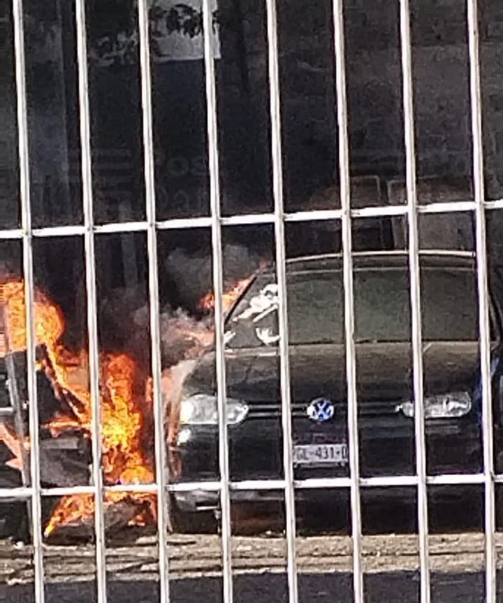 Apenas minutos después, un vehículo Volkswagen Jetta, de color negro que se encontraba dentro de un taller mecánico fue consumido por el fuego, en el Boulevard Industrial, a unos metros del acceso a Caltzontzin.