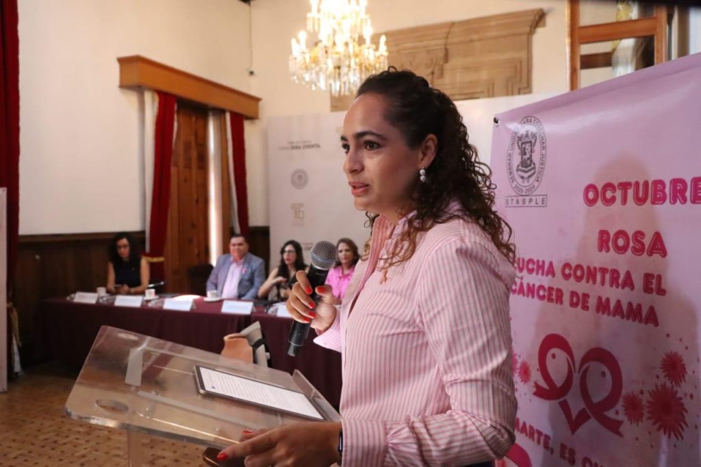 En el marco del mes rosa y la lucha contra el cáncer de mama, la diputada Giulianna Bugarini Torres, presidenta de la Mesa Directivas del Congreso del Estado, destacó la importancias de hablar de la lucha contra el cáncer de mama en estos espacios a fin de visibilizar este problema de salud y generar una cultura de prevención, además en donde las mujeres aprendan como autoexplorarse y en conjunto, compartir experiencias.