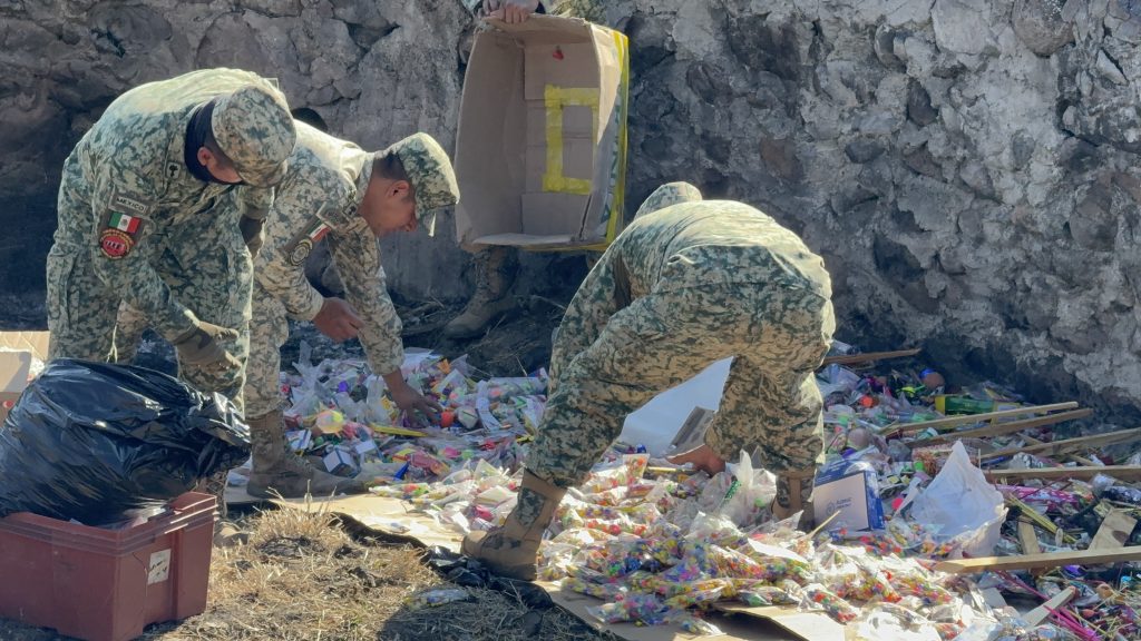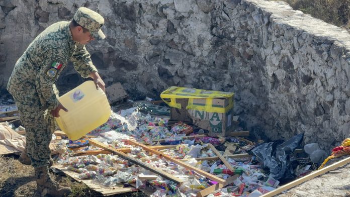 “Es cerca de una tonelada, son alrededor de 900, 950 kilogramos de diferentes artificios y material pirotécnico que se estuvo asegurando durante los diferentes operativos que se estuvieron llevando a cabo