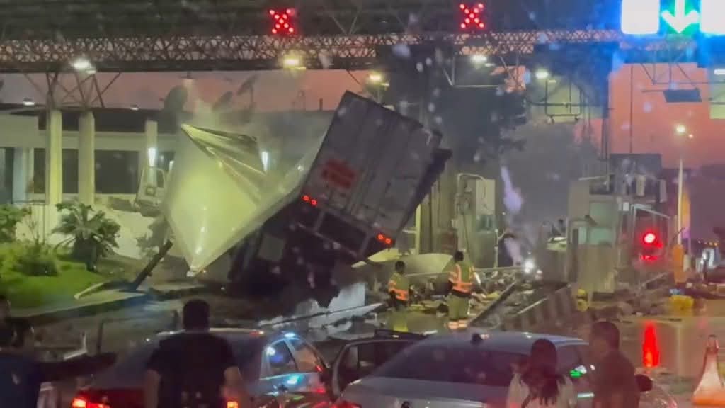 El aparatoso percance se registró durante la noche de este viernes, en el kilómetro 202+256. Presuntamente, el tractocamión se quedó sin frenos, embistió a varios automóviles y terminó estrellado contra las cabinas 1, 2 y 3, donde tres empleados resultaron heridos; el resto de los lesionados viajaba en los automotores impactados por la pesada unidad.