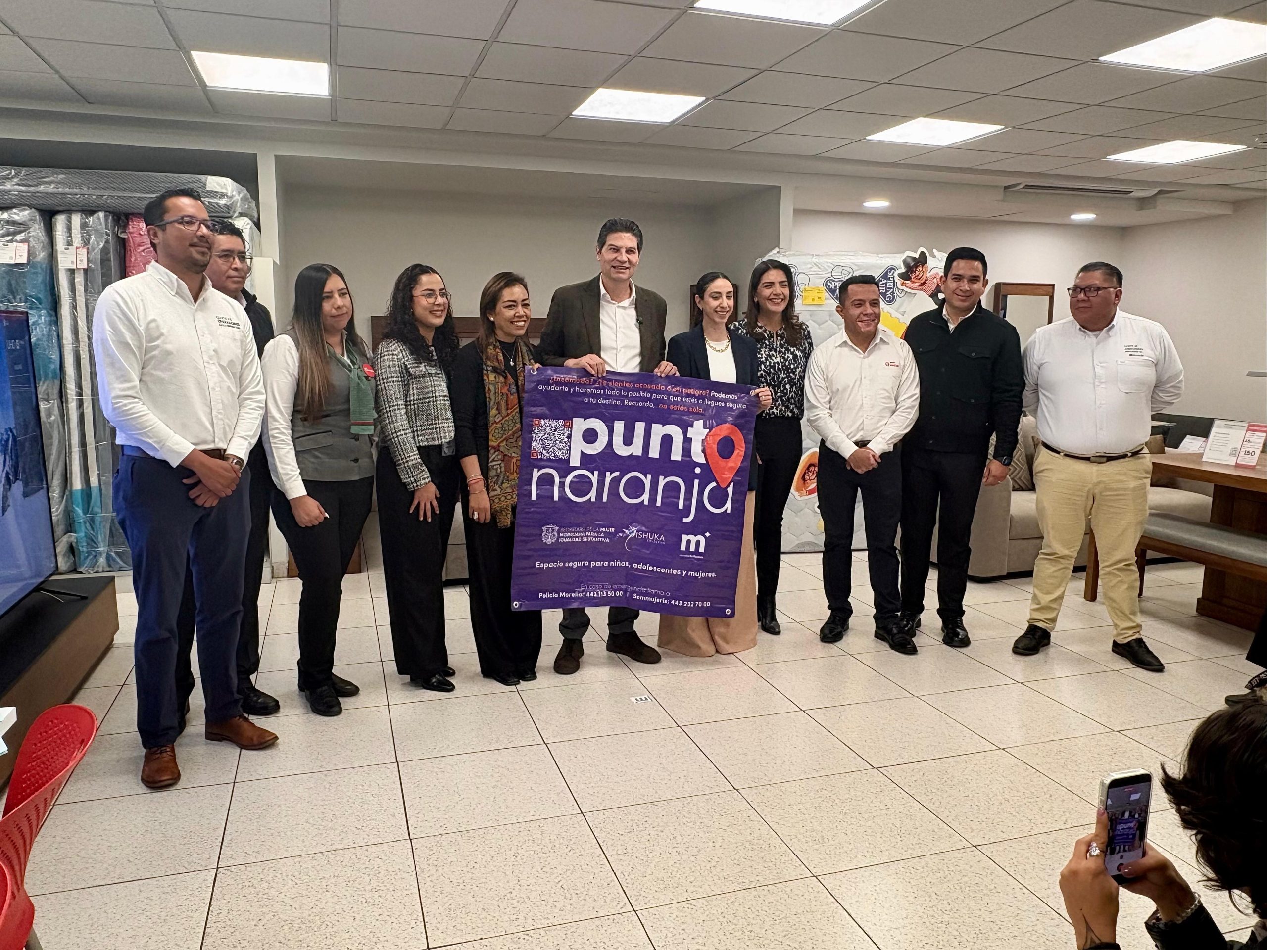A partir de este 11 de noviembre, las sucursales de Tiendas Elektra y Banco Azteca en Morelia se integraron a la red de Puntos Naranja, espacios seguros donde las mujeres que enfrentan violencia de género o acoso sexual pueden solicitar apoyo y recibir atención por parte de personal capacitado por la Secretaría de la Mujer Moreliana para la Igualdad Sustantiva (SEMMUJERIS).