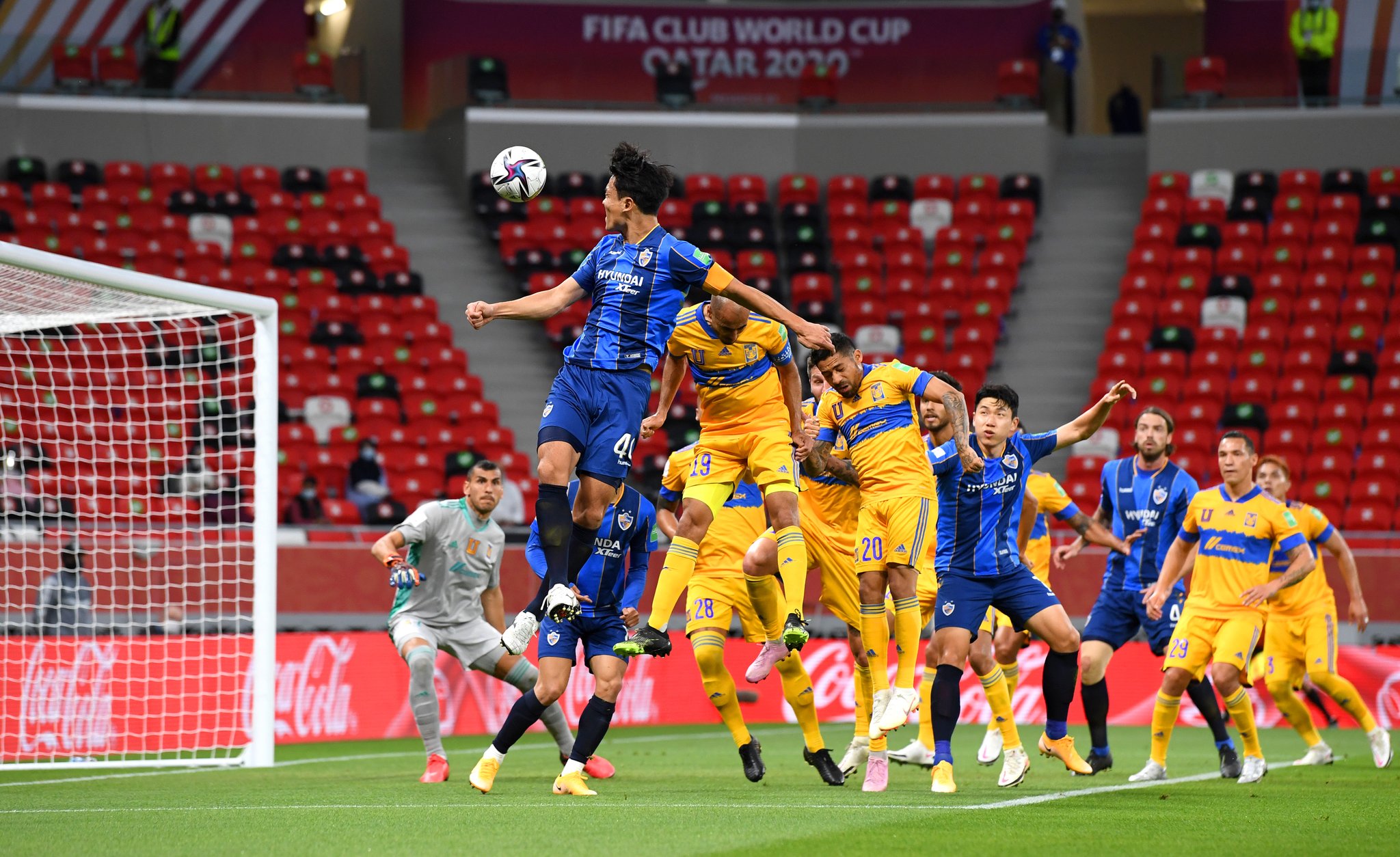 El primer tiempo del partido comenzó con el equipo mexicano como dueño del balón, pero a pesar de esto los surcoreanos sorprendieron y al minuto 24 Kim Ki-Hee, marcó el 0-1 en un tiro de esquina anticipándose a la defensa de Tigres en el primer poste y con un buen cabezazo derrotó a Nahuel Guzmán.