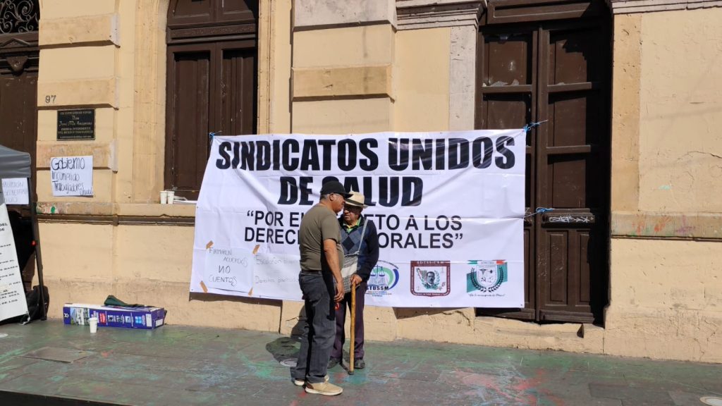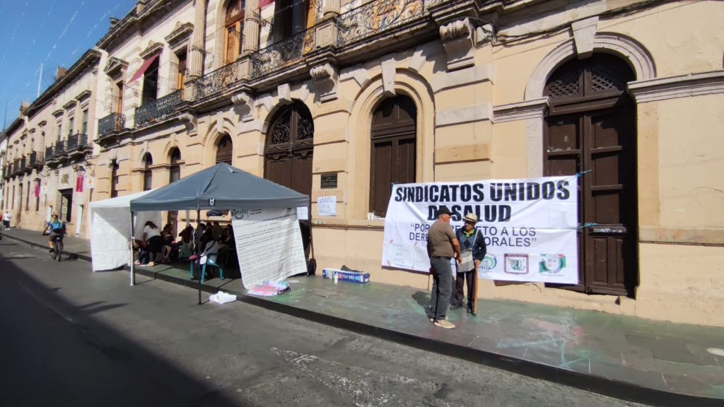 Guadalupe Pichardo Escobedo, dirigente del Sindicato de Salud “Lázaro Cárdenas”, denunció que el gobierno bedollista ha detenido este derecho 3 años bajo el argumento de que es responsabilidad del IMSS-Bienestar, cuando los representantes de este organismo han señalado que corresponde al gobierno estatal.