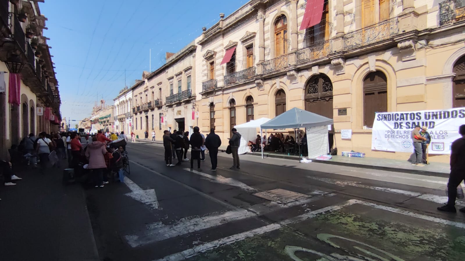 Con un plantón frente al Congreso de Michoacán, así como el cierre de las avenidas Ventura Puente y Acueducto, agremiados a tres sindicatos de la Secretaría de Salud, demandaron a diputados y al titular del sector, Elías Ibarra Torres hacer efectivo el derecho al escalafón que han bloqueado para 3 mil 200 empleados y beneficiar así “a sus allegados”, además de que se les otorguen las prestaciones pendientes, con la transición al IMSS Bienestar.