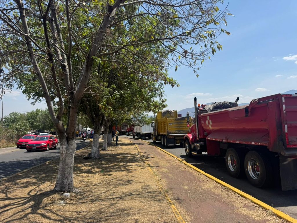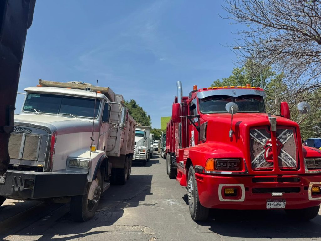 Transportistas de materiales bloquean carril de Villas del Pedregal por disputa laboral