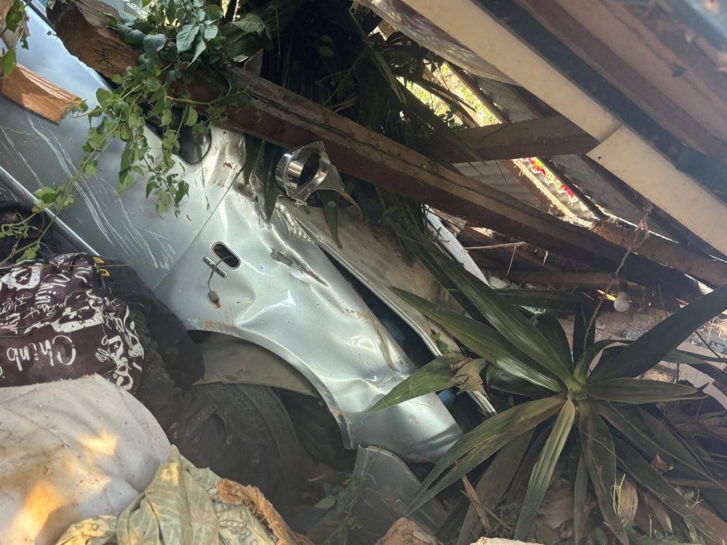 Zitácuaro, Mich.- Un automóvil cayó desde lo alto de una vialidad hacia un desnivel y terminó siniestrado sobre la techumbre de un domicilio ubicado en la colonia Pueblo Nuevo de esta ciudad de Zitácuaro. El accidente ocurrió luego de que el vehículo chocara contra una motocicleta, cuyos dos ocupantes resultaron heridos, informaron autoridades policiales y de rescate.