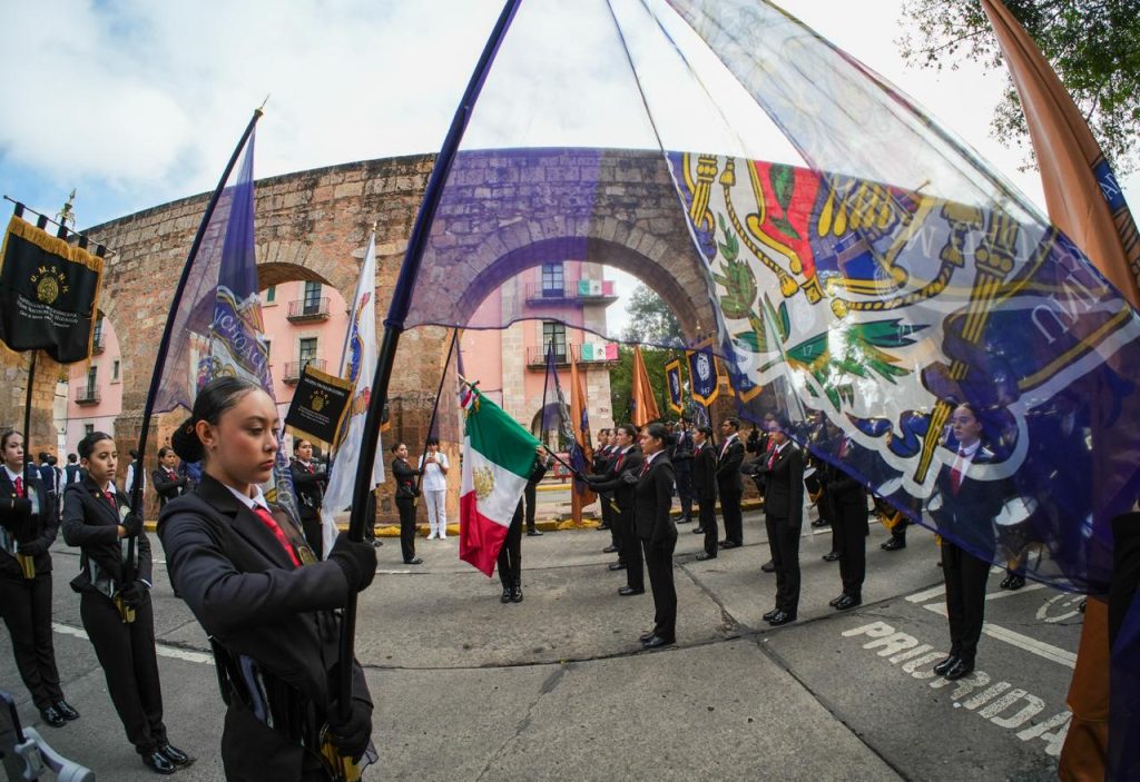 Las representaciones de las diferentes escuelas, facultades e institutos, se hicieron presentes a paso firme con sus estandartes y banderines para conmemorar el natalicio del “Siervo de la Nación”, una de las figuras centrales de la historia de México y de la Máxima Casa de Estudios del Estado.