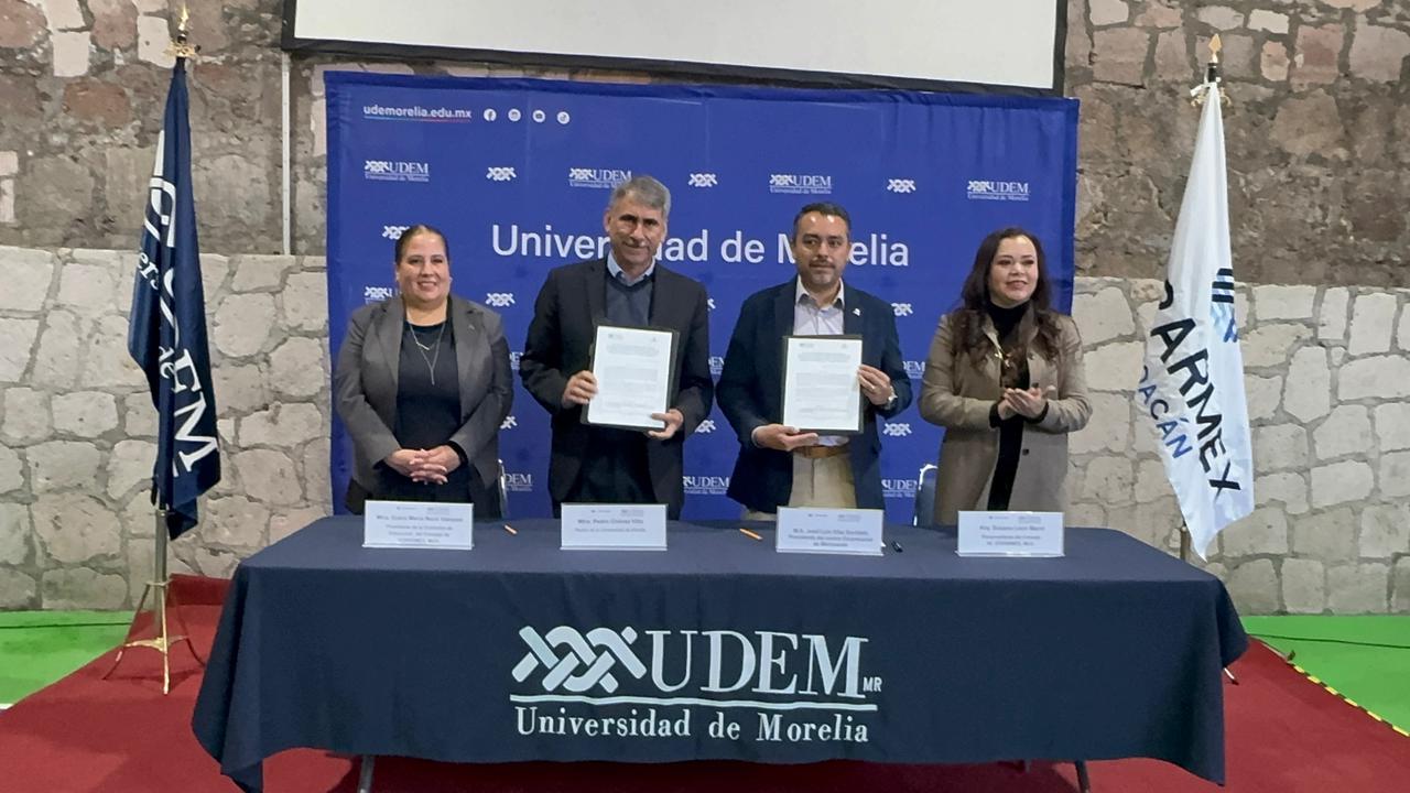 La Universidad de Morelia (UDEM) y la Confederación Patronal de la República Mexicana (COPARMEX) en Michoacán firmaron un convenio de colaboración con el objetivo de acercar oportunidades laborales a los estudiantes y egresados de esta institución educativa.