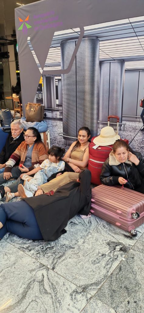 Eunice, una de las afectadas, relató las condiciones que enfrentaron dentro del aeropuerto, donde la falta de servicios complicó aún más la espera. “La única maquinita que tiene comida es la máquina expendedora y ya solo le quedan galletas. Todos los locales de comida están cerrados. No hay nada en el aeropuerto para poder comer. Lo más buscado es el agua y tampoco hay”, narró.