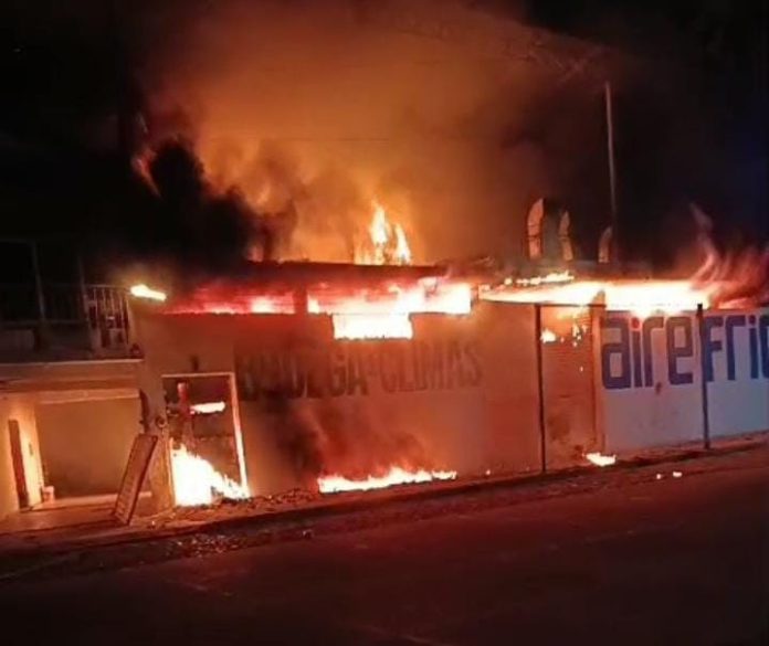 Fue durante la madrugada, cuando vecinos pidieron ayuda al número de emergencias 911, luego de que detectaron la quemazón, en un inmueble de la calle Francisco Argandar, esquina con Avenida 22 de Octubre, justo en el establecimiento “Climas Aire Frío”.