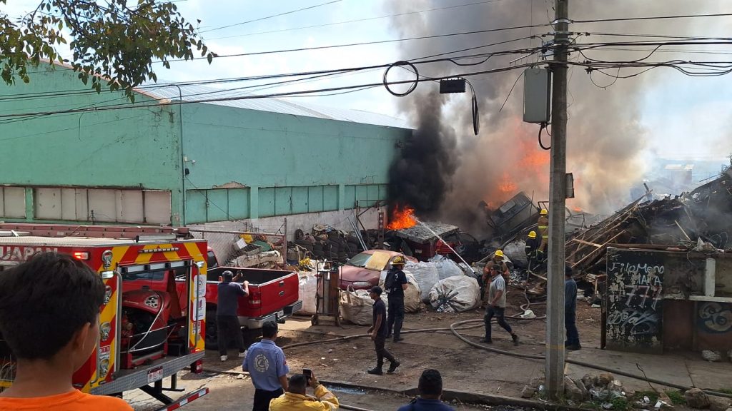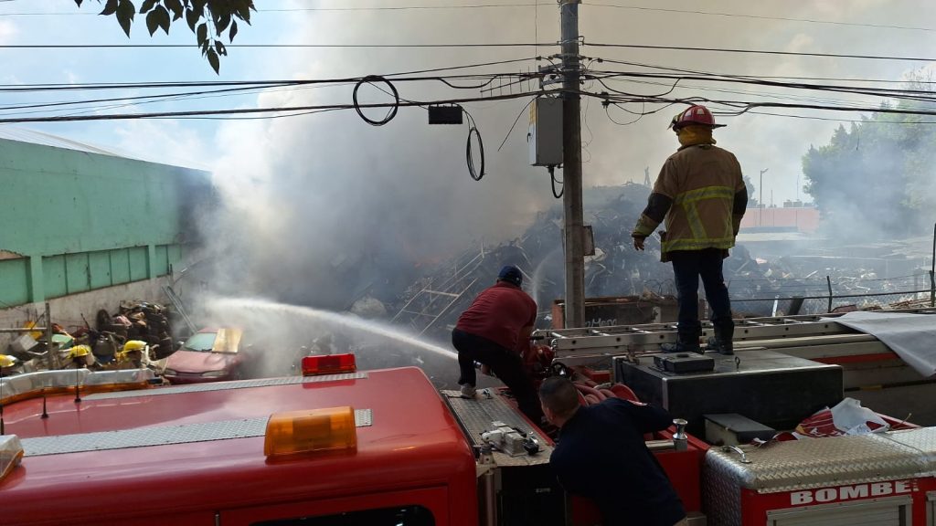 Uruapan, Mich.- Un voraz incendio en un almacén de chatarra registrado en el Fraccionamiento Lomas del Valle Sur de Uruapan, movilizó a elementos policiacos y Bomberos de distintas corporaciones; no se reportaron víctimas.