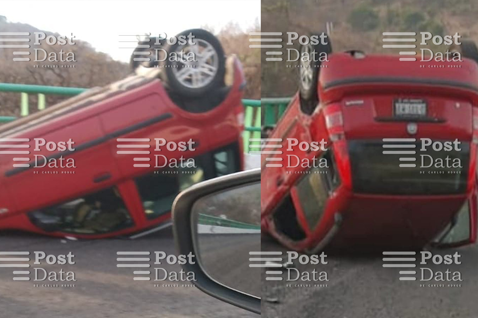 Morelia, Mich.- Un vehículo volcó sobre el Ramal Camelinas ubicado en la zona sur de la ciudad de Morelia. Por fortuna no hubo heridos ni fallecidos, informaron las autoridades policiales.