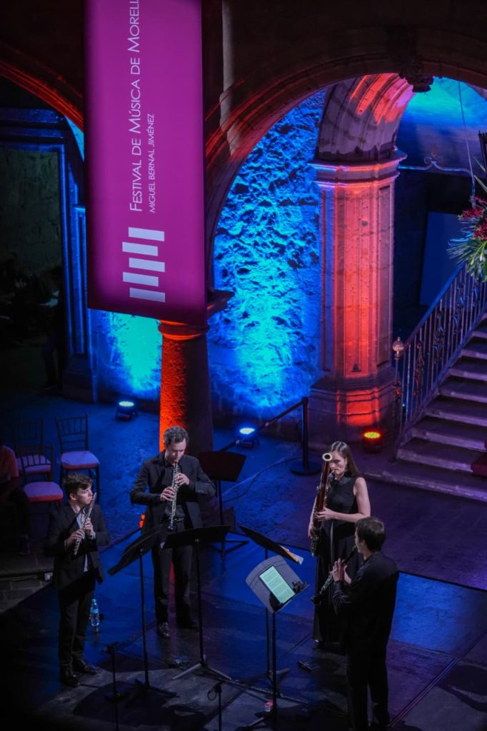 Morelia, Mich.- La tarde del viernes se llenó de armonías vibrantes y emociones en el Palacio Municipal, donde el público disfrutó del segundo concierto del Festival de Música de Morelia Miguel Bernal Jiménez con la presentación de WindSync, uno de los quintetos de alientos más destacados de la escena internacional.